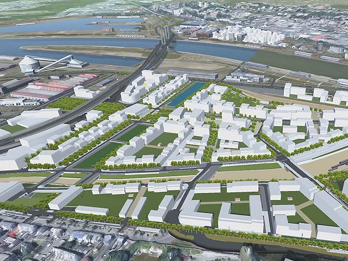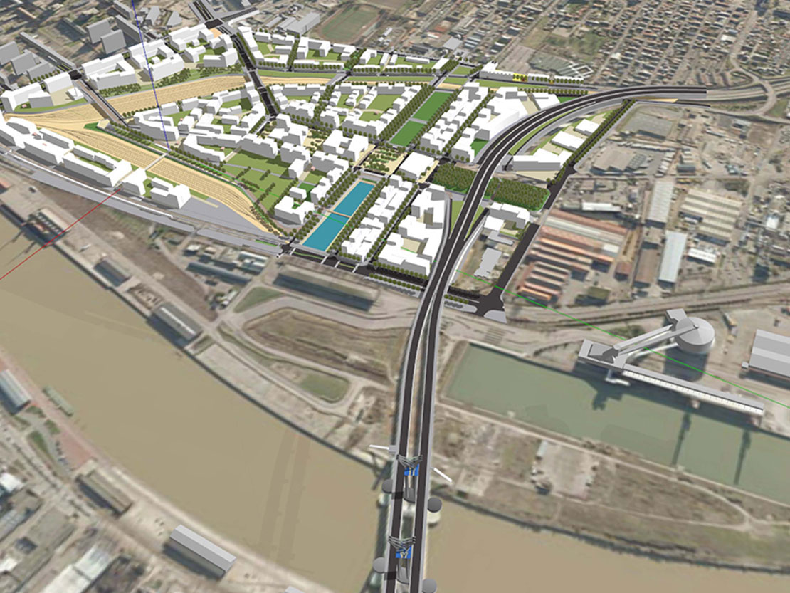 Réalisation d’une maquette numérique 3D de l’installation du futur écoquartier Flaubert à Rouen et du réaménagement des routes.