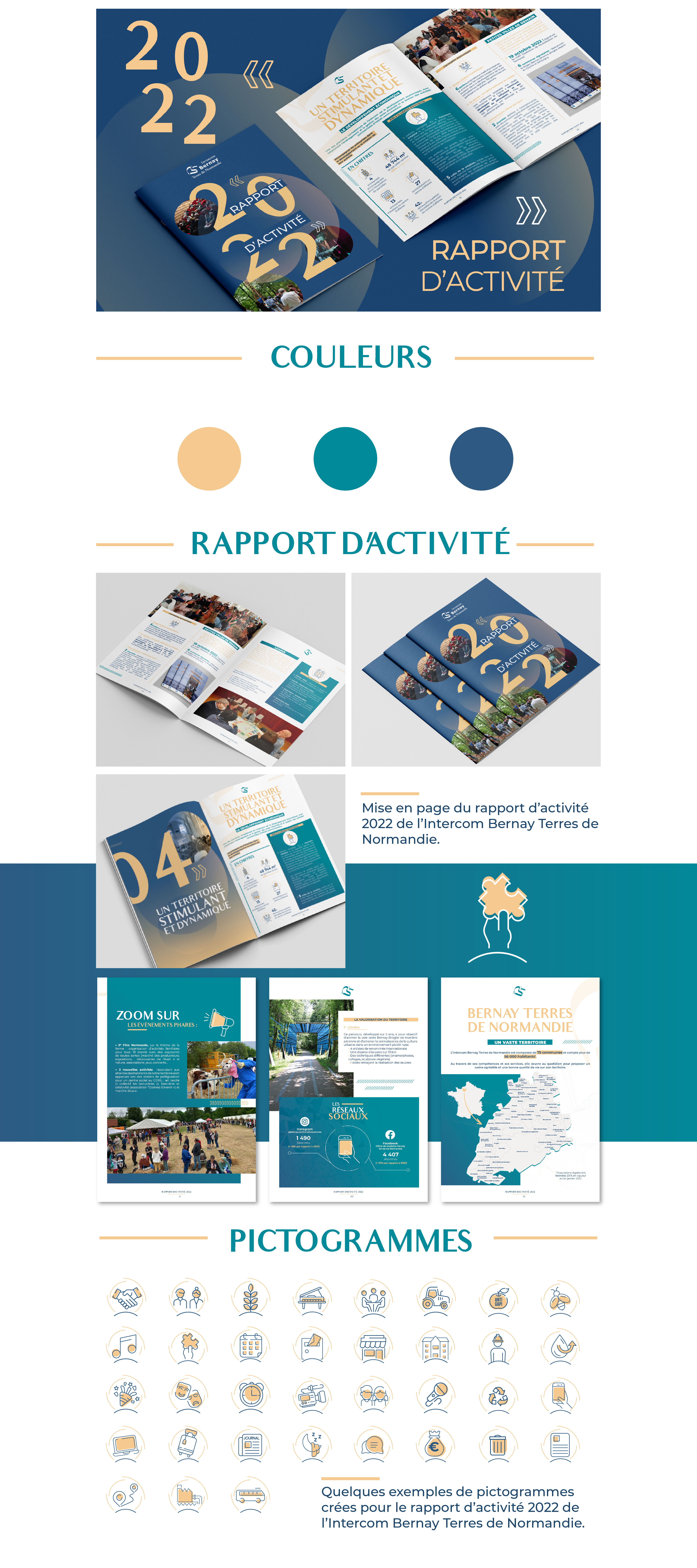 Mise en page du rapport d'activité 2022 de l'Intercom Bernay Terres de Normandie
