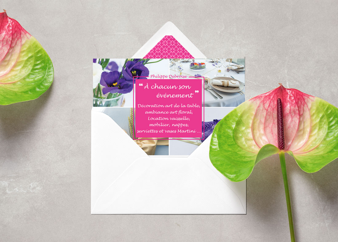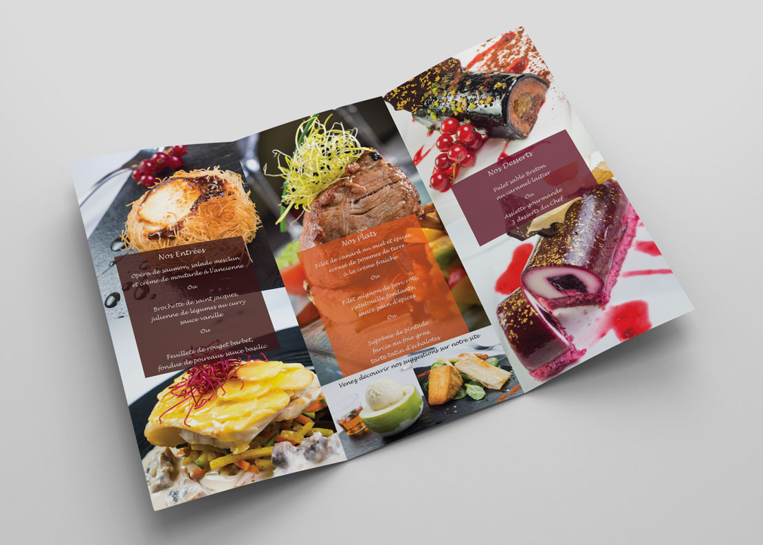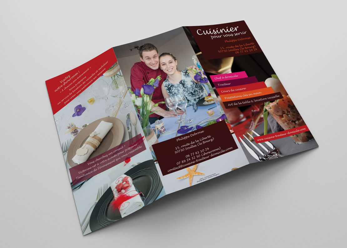 Réalisation d'un dépliant pour le traiteur Philippe Debroise ainsi qu'une carte de visite pour son "showroom".